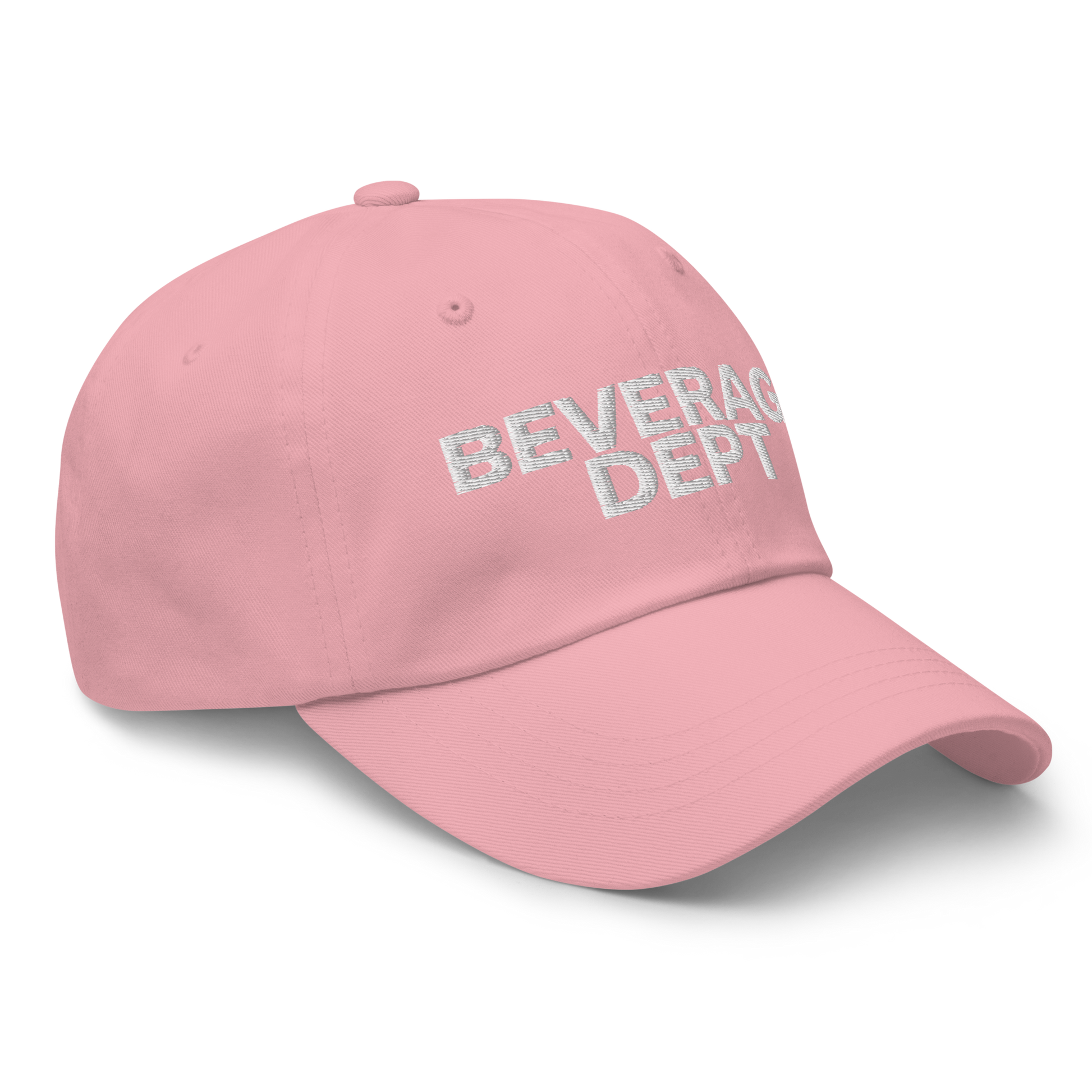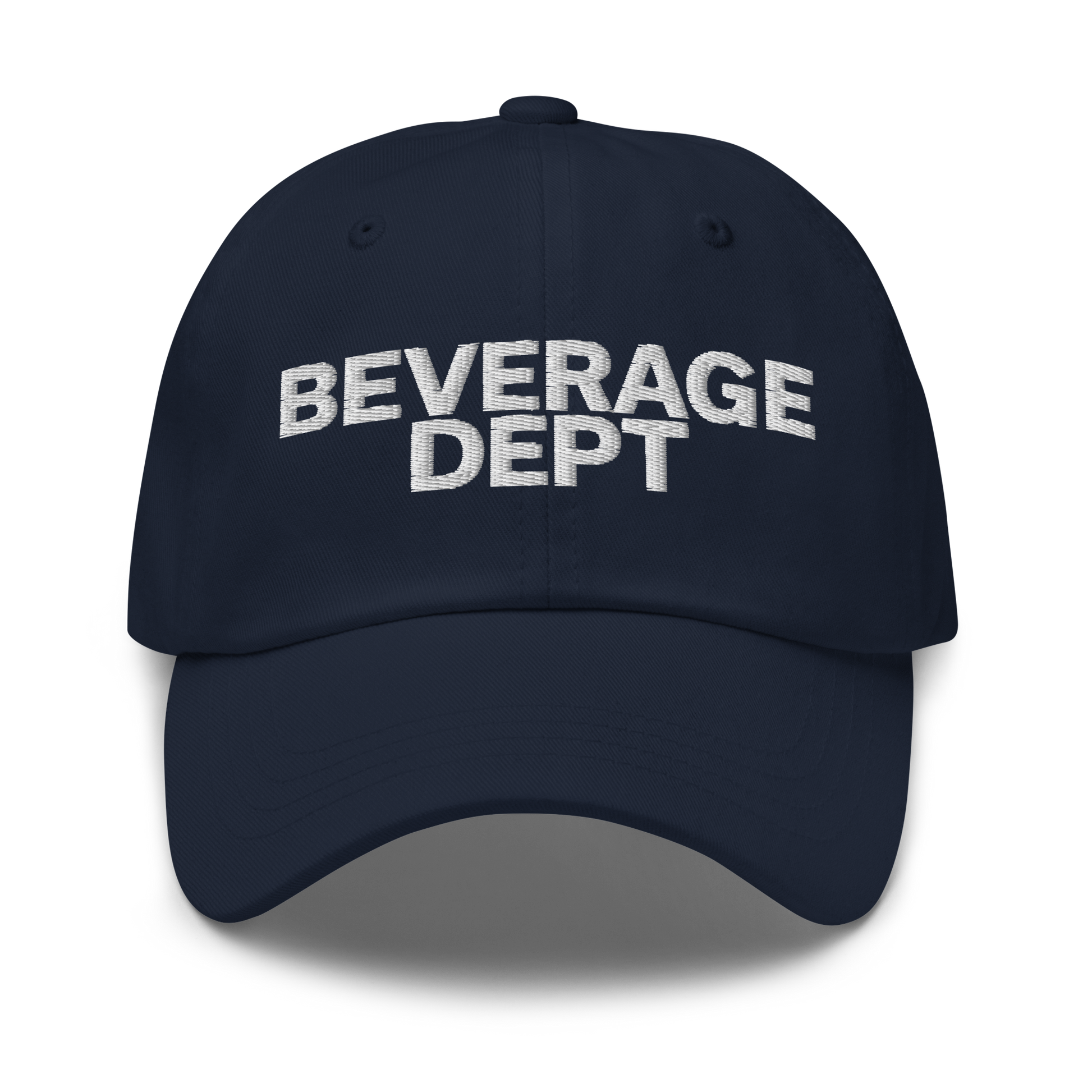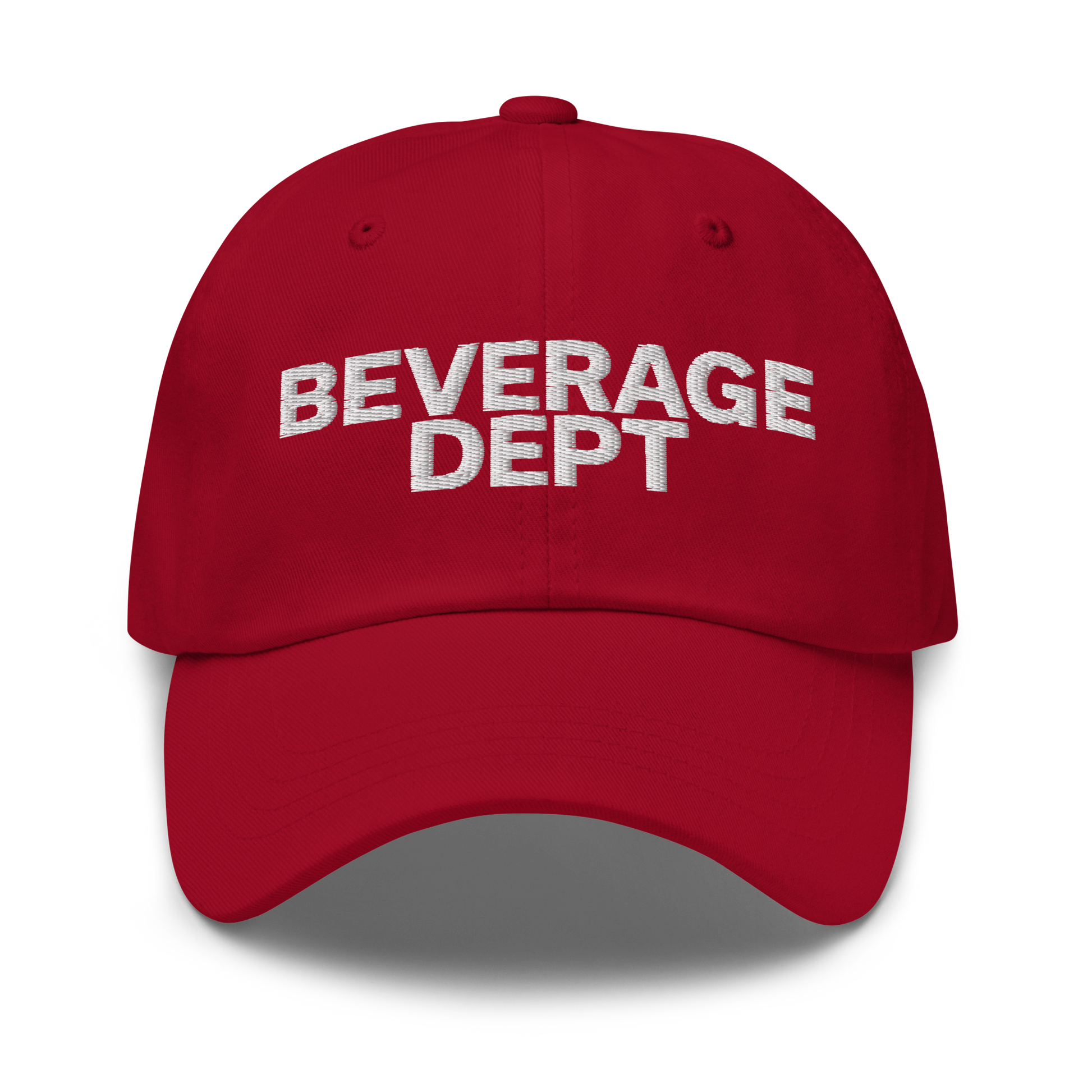 Elevate your style with the Beverage Dept Dad Hat. Crafted with a timeless, laid-back design, this hat is the perfect way to rep your love for all things beverage. Featuring high-quality embroidered "Beverage Dept" lettering, it’s a nod to your passion, whether you’re grabbing a drink or running errands. The adjustable strap ensures a comfortable fit for all head sizes, making it the perfect accessory for every occasion.